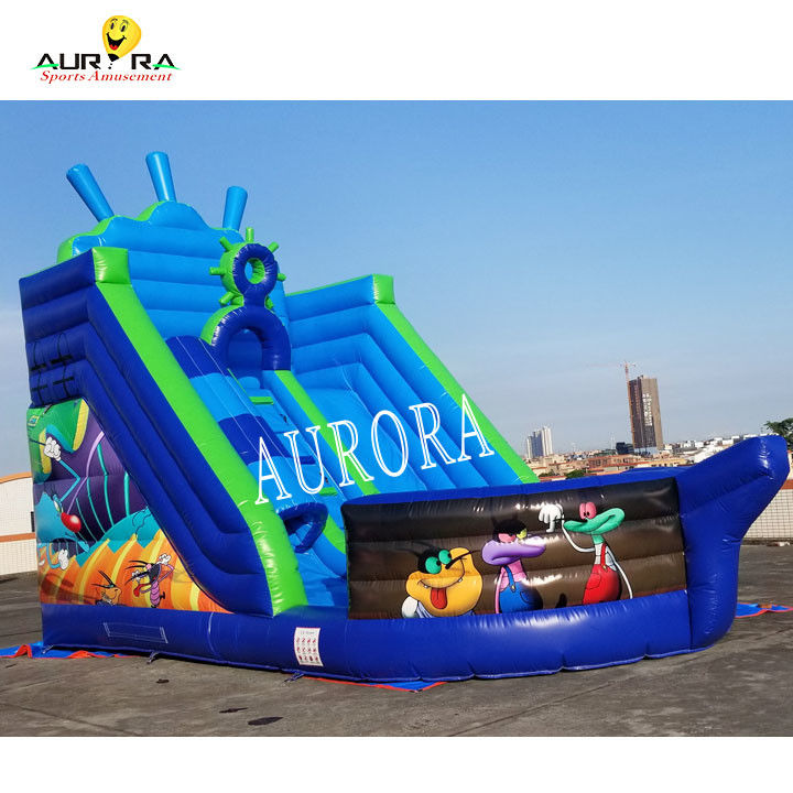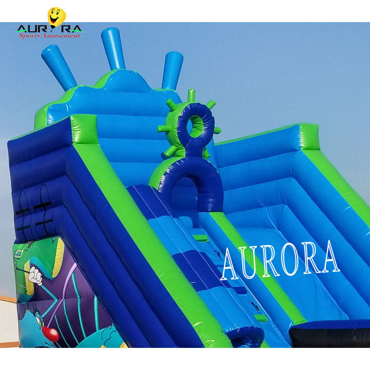 Commerciële opblaasbare glijbaan met blauwe dubbele banen