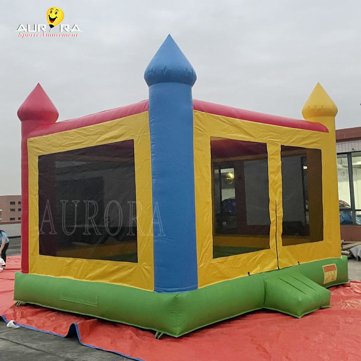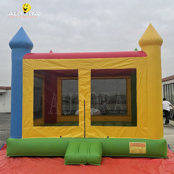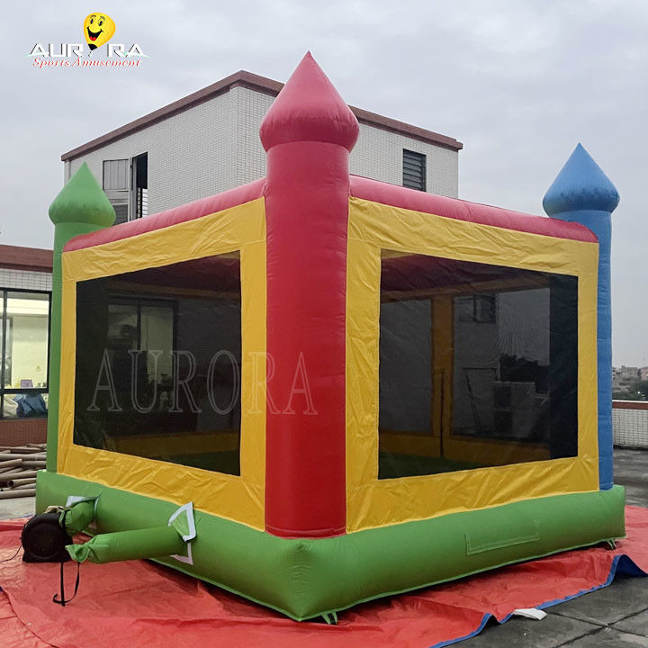 Springend opblaasbaar springhuis met luchtblazer Geel Blauw Groen Rood