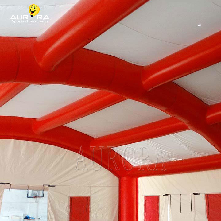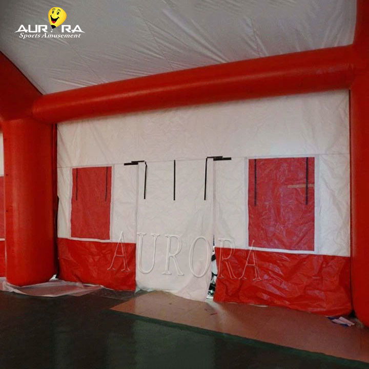 Deze gigantische opblaasbare tent is 12x15m, kan gemaakt worden in verschillende maten, verschillende kleuren zijn verkrijgbaar.Met grote ingangsdeuren aan beide uiteinden.Als je het raamgordijn op of neerrolt, kun je de tent volledig afsluiten.Er zijn netten om te voorkomen dat muggen binnen de tent vliegenDeze gigantische opblaasbare tent is luchtdicht, het is een eenmalige opblaas.