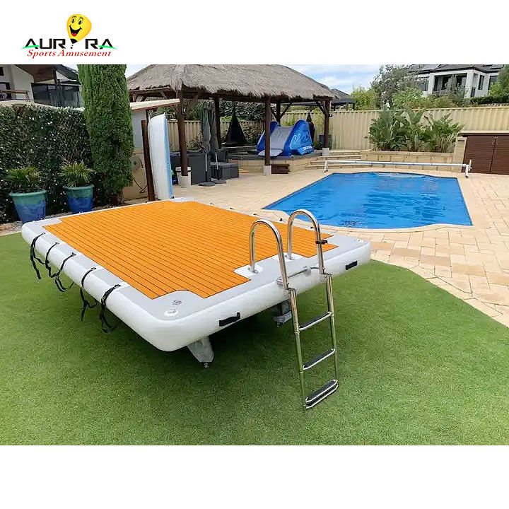 Opblaasbare drijvende platforms houden doorgaans rekening met de veiligheid van de gebruikers en kunnen worden ontworpen met antisslipoppervlakken.alsmede zijdelingse beveiligingsrails of behuizingen om het risico op toevallig glijden of vallen in het water te verminderen.
